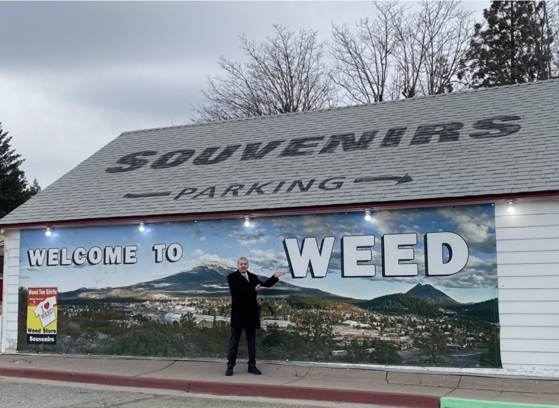 Dave stopping by the charming town of Weed, Siskiyou County