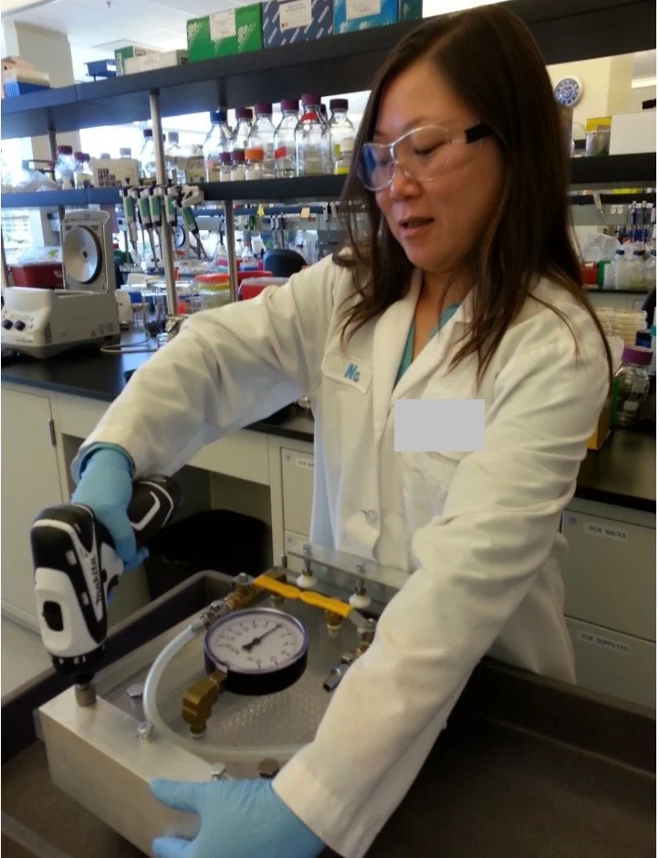Na Fennell working hard in the Biotech lab