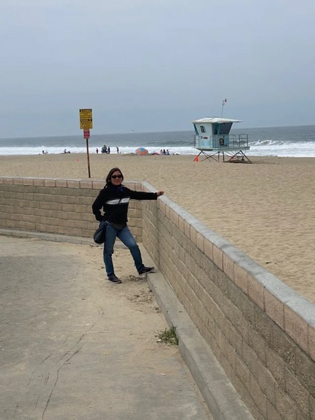 Dave’s wife Na Fennell hitting the sand at Long Beach, Los Angeles County